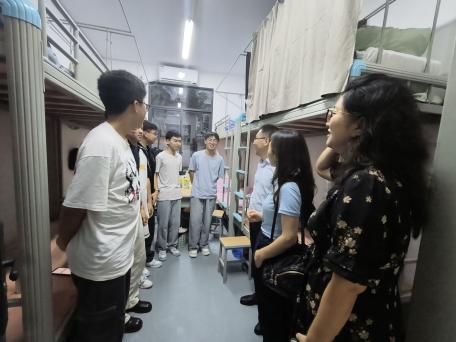 迎新当晚,学院党政领导班子带领辅导员和主要团学干部走进宿舍,走访慰问2025级新生。