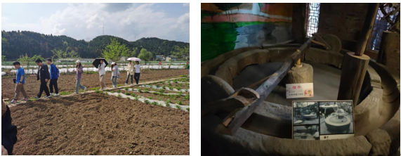 在盐泉学校,师生首先参观了学校的农耕教育基地。盐泉学校农耕教育基地分为种植体验和作坊体验,种植体验分为六个种植区,由不同班级学生管理,分别种上时令农作物,体验翻地、播种、除草、施肥、收获等环节;作坊体验是学生在老师和外聘的农业技师的指导下,现场进行豆浆和豆腐的制作,体验磨、烤、烧、煮等环节。旨在引导学生在种植、管理、收获以及制作美味食品的各个环节中获得收获与成长。随后,师生们参观了农耕文化馆。馆内陈列着各种传统农具和农耕文化的图片资料,在小讲解员的带领下,师生不仅了解了农耕文化的起源和发展,还亲身体验了传统农具的使用,感受到了农耕文化的深厚底蕴。最后师生聆听了于述军校长的讲座,他分析了盐泉学校的挑战及发展需求,强调了学校教育在乡村振兴中的重要作用,分享了教育教学、师资培养等方面的经验。